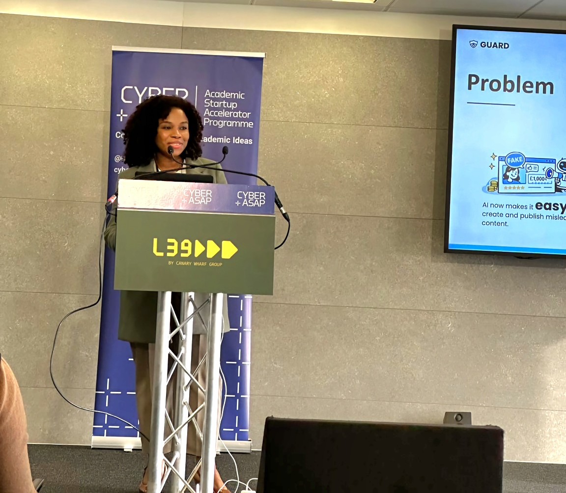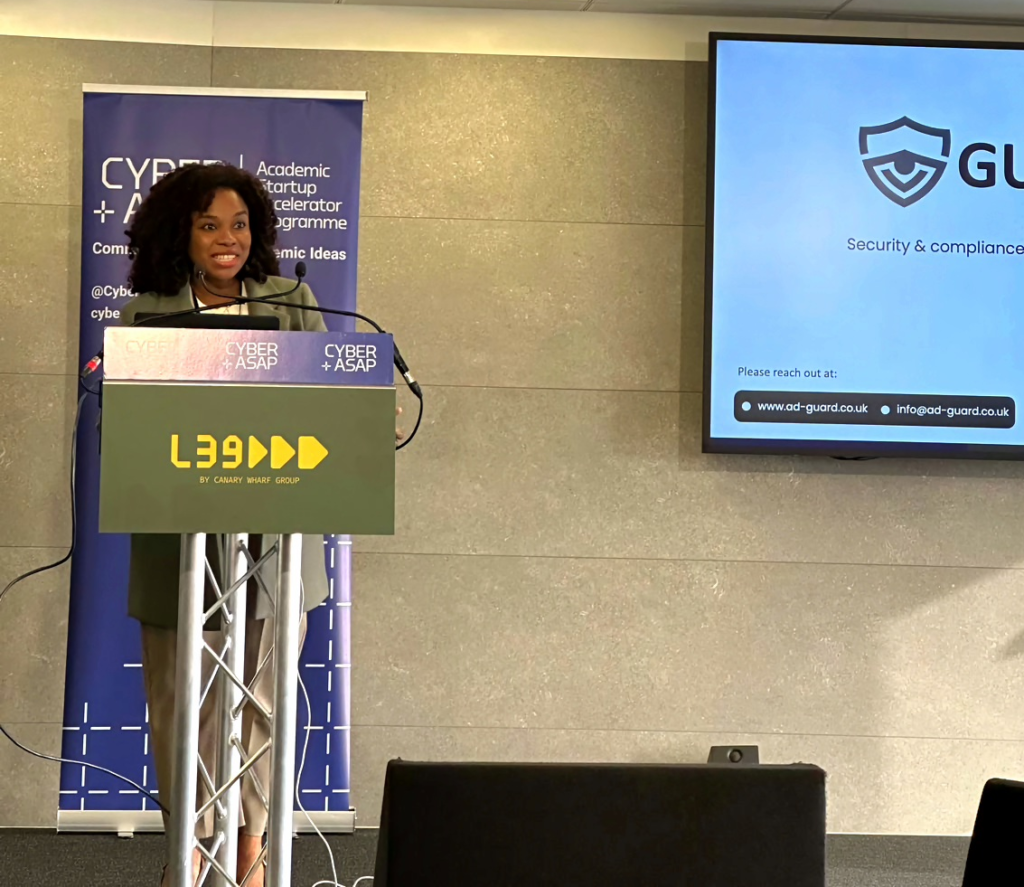 Presenting GUARD at the Cyber Security Academic Startup Programme Year 9 Demo Day at Level 30 in Canary Warf London.