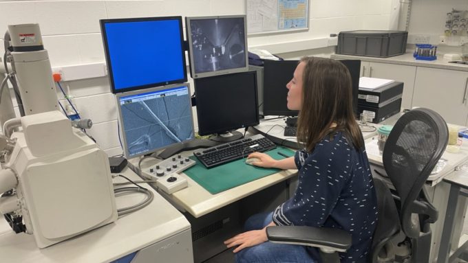 “My responsibilities involve preparing, testing and analysing the results from all the soil samples that I receive from a Roman Archaeological excavation site called Magna at Vindolanda near Hadrians wall in Northumberland. All the fresh soil samples that arrive needs to be dried in an oven to remove the water content and then ground in a mortar and pestle to create a fine powder. This step of soil preparation is essential for the machines to produce accurate data. The samples are then tested using a pXRF machine which uses X-rays to identify the elemental composition of the samples and NIR machine to show the wavelength of each element. I can then analyse this data to calculate the percentage of each element that makes up each sample. Finally, I produce a map showing any hotspots at the site where elements are concentrated and this could help identify how different areas of the land were used.
