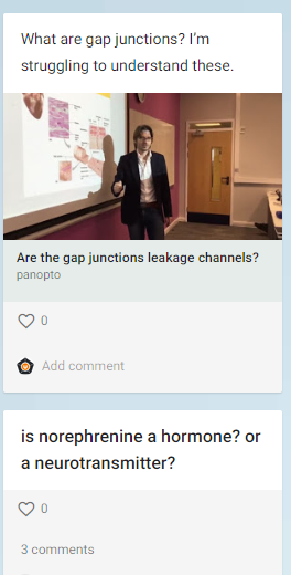 The Q&A board has allowed the tutors to provide direct feedback to students live in class. To further enhance this experience the Panopto (ReView) app was used on the iPad to record the answers to questions asked within the class room. The video clips were then uploaded to the Padlet wall. This helped students as it provided an easily accessible recording of explanations to refer back to without having to access the whole lecture recording.