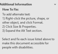 3. Click on any of the reported issues and Additional Information will be provided on how to correct these in the bottom of the pane.