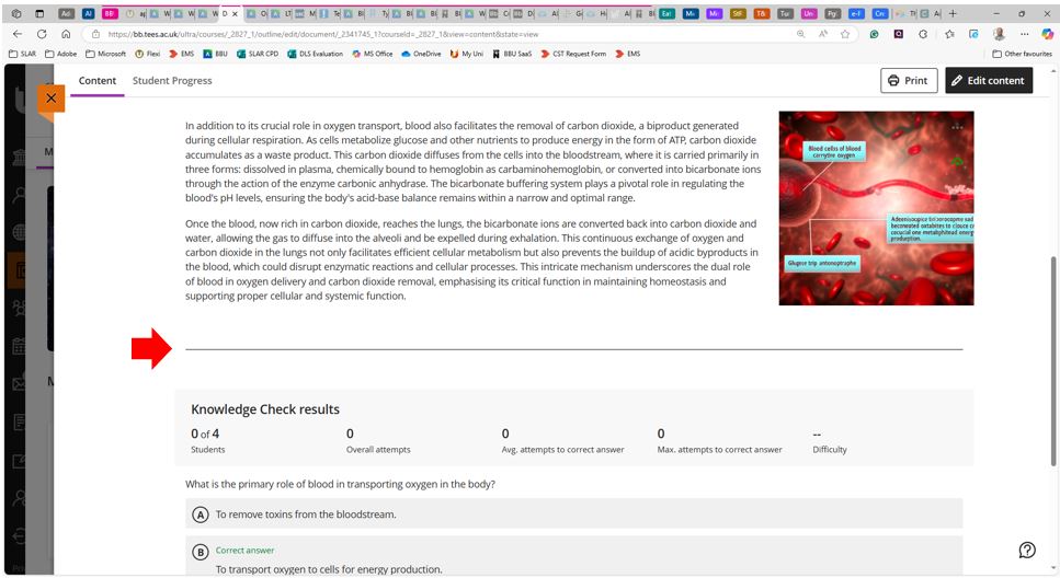 To learn more about creating Knowledge Check quizzes in Blackboard documents, visit the Teesside University Learning Support Guide: Knowledge Checks in Blackboard Documents.