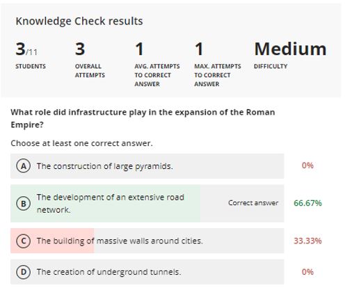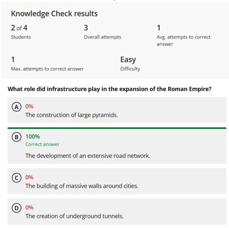 | Staff view of knowledge check results in an Ultra document – pre-upgrade | Staff view of knowledge check results in an Ultra document – post-upgrade |