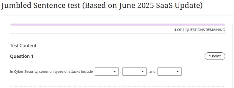 A new question type has been added to the Blackboard tests range of available question types, the ‘jumbled sentence’ question.