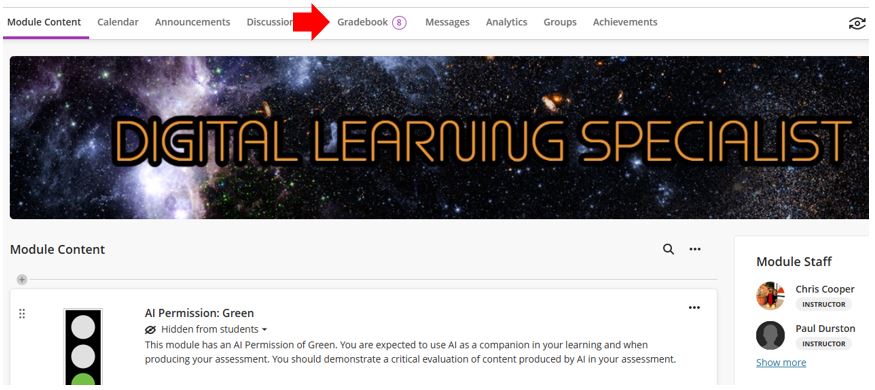 Knowledge Check quizzes in Blackboard documents now feature a clearer and more user-friendly results display. This enhancement makes it easier for Module Leaders to review student performance directly within the document.