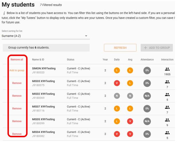 - Use the Remove option next to each student you wish to be removed, or choose Remove all.