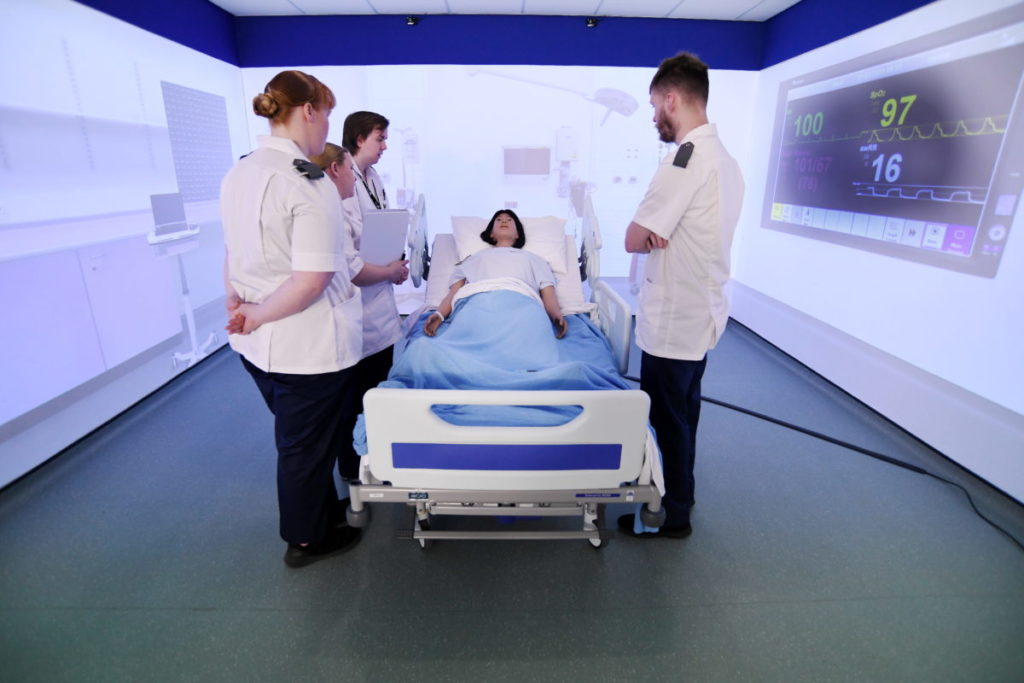 Visuals, sound and high-fidelity mannequins are used to immerse health students in a wide range of nonobvious environments such as inside an ambulance, care home, or even a football stadium!